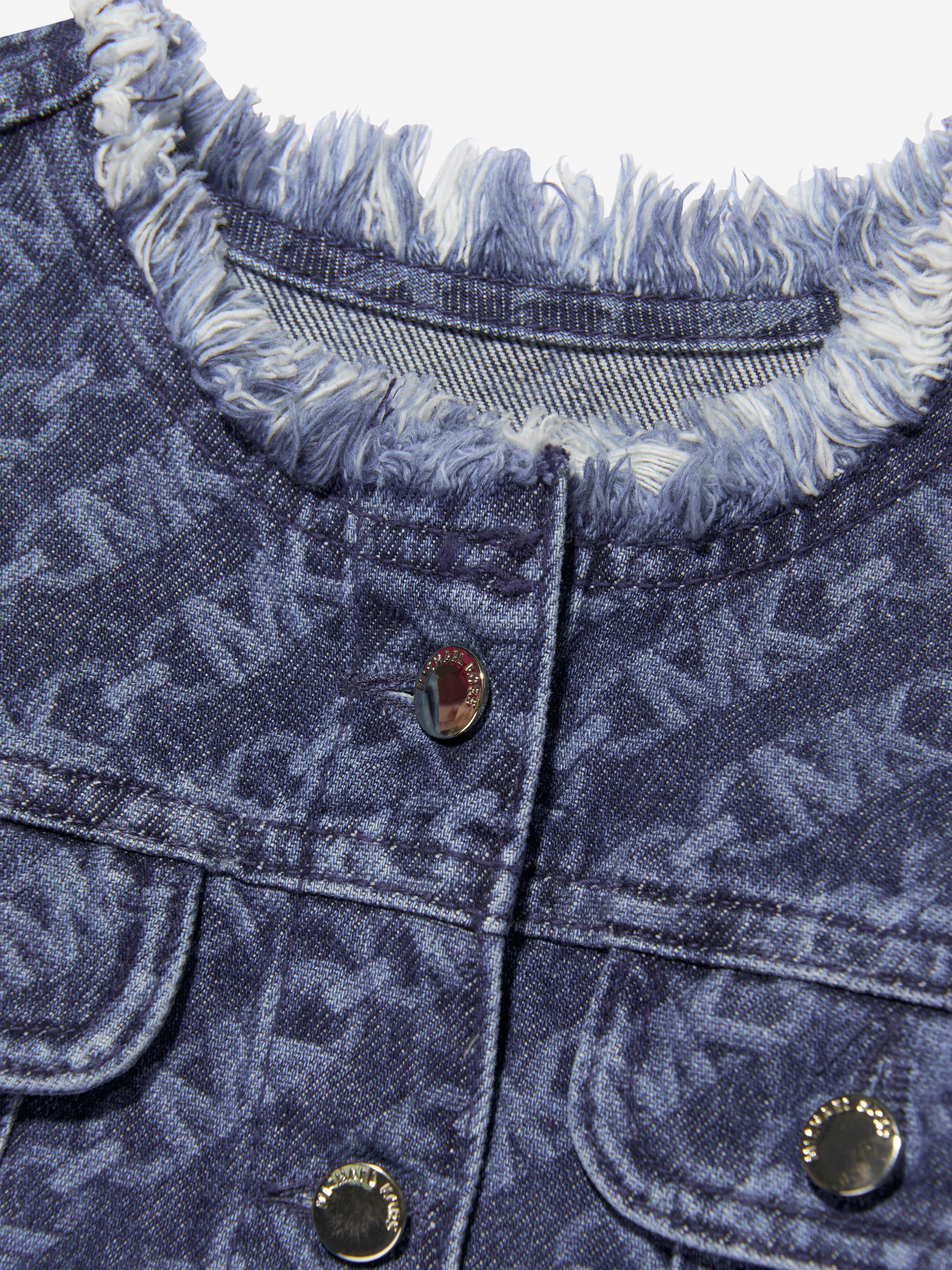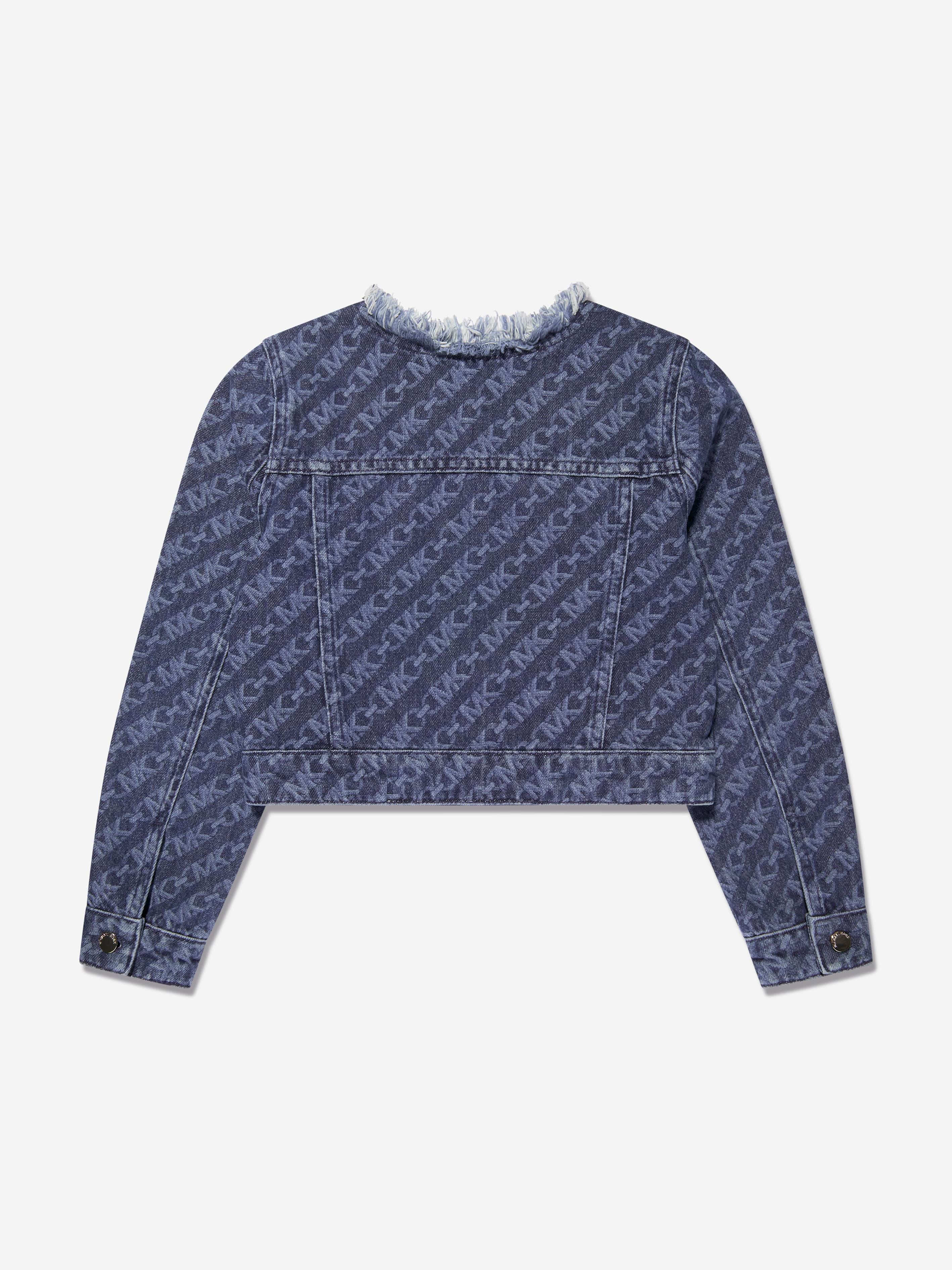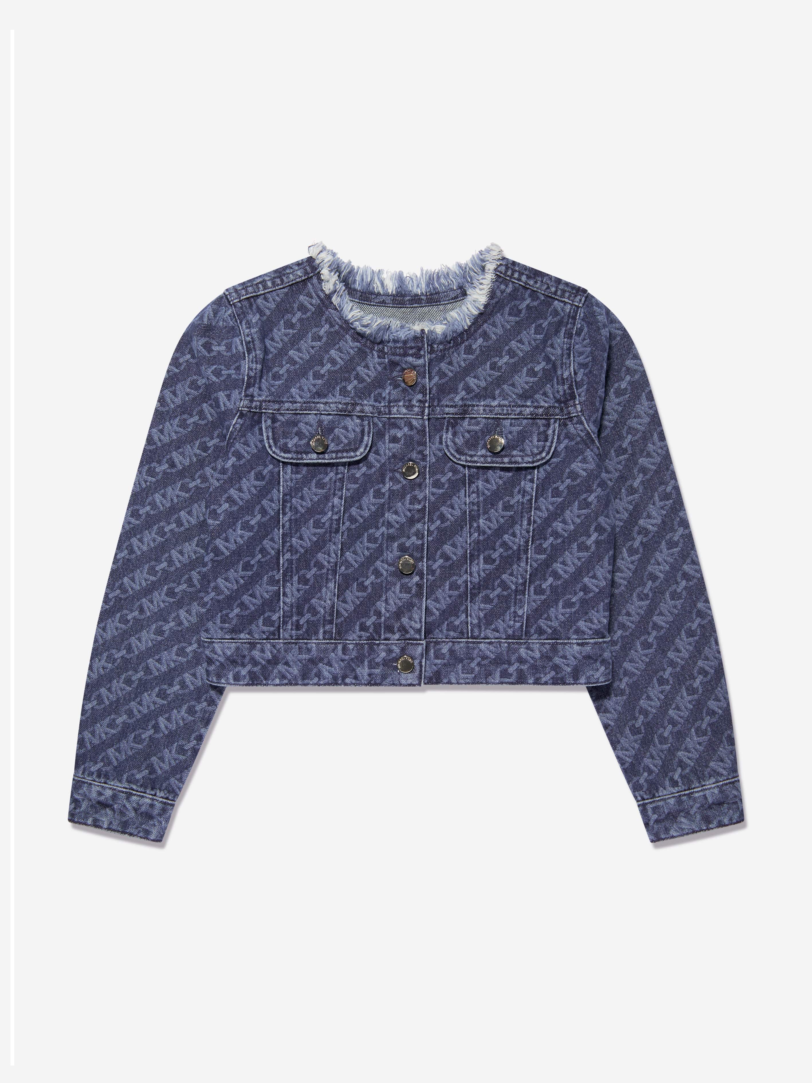 Michael Kors project flawless, mesmeric designs into their aesthetics. This girls denim blue short jacket revitalises traditional couture into innovative portraits. Envisioned in beautiful organic farming with geometric "MK Empire" logo patterning via a frayed collar and gold branded buttons. She will be the envy of her peers.