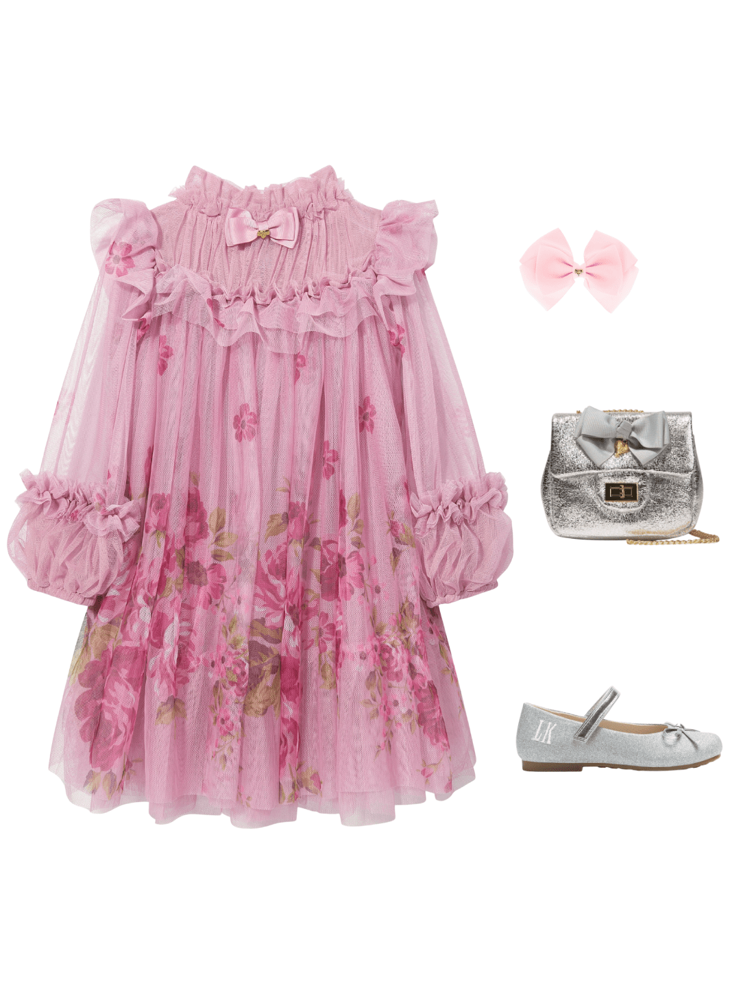 Angel's Face depict mesmeric high quality in their beautifully crafted designs. This girls Nadiya border print tulle tea rose occasion dress is woven from refined flock florals.