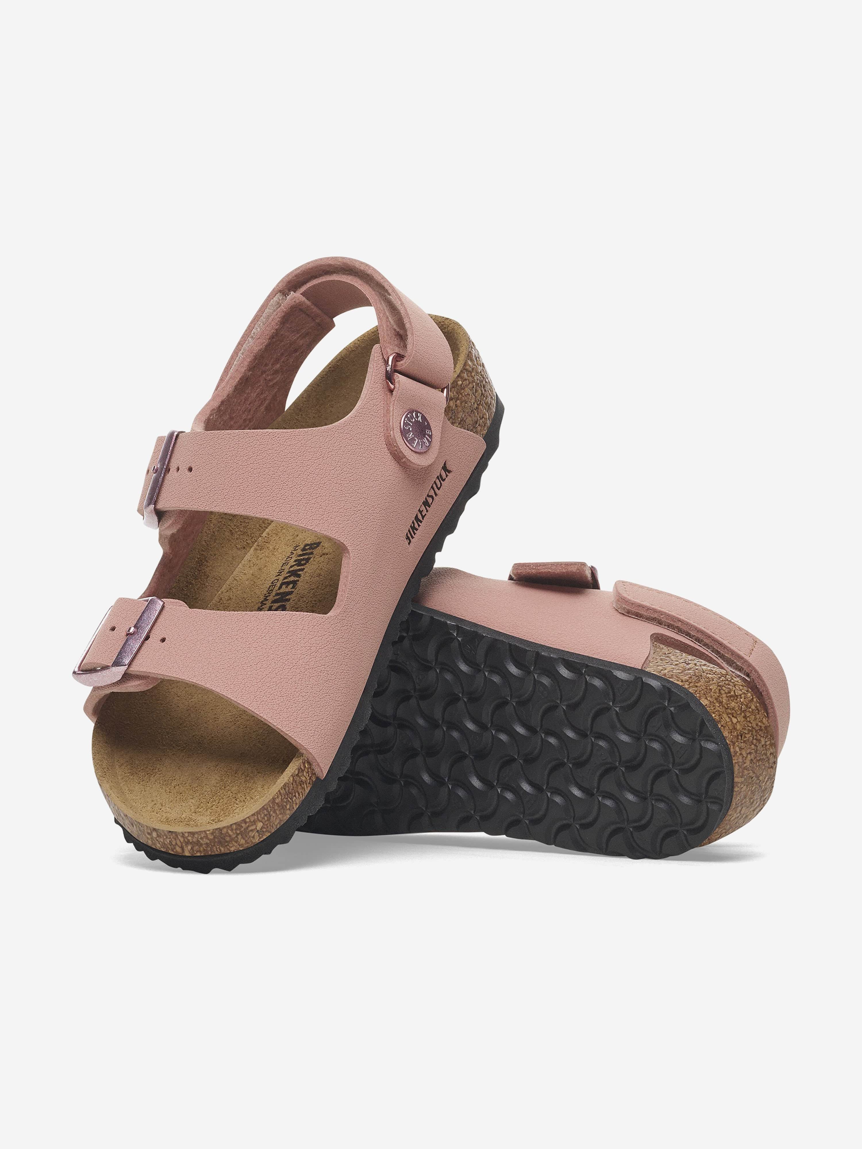 Birkenstock depict natural materials in their refined eco-friendly aesthetics. These girls Milano AS sandals in pink are woven in Birko-Flor......